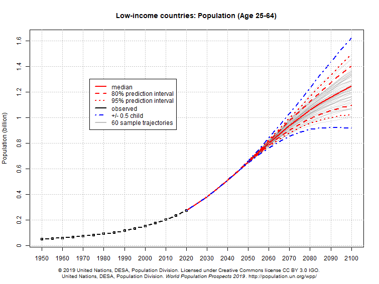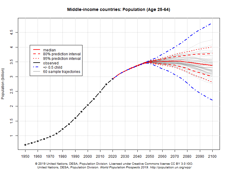 Projections show that the working-age population of middle and low-income countries will continue to grow for decades.