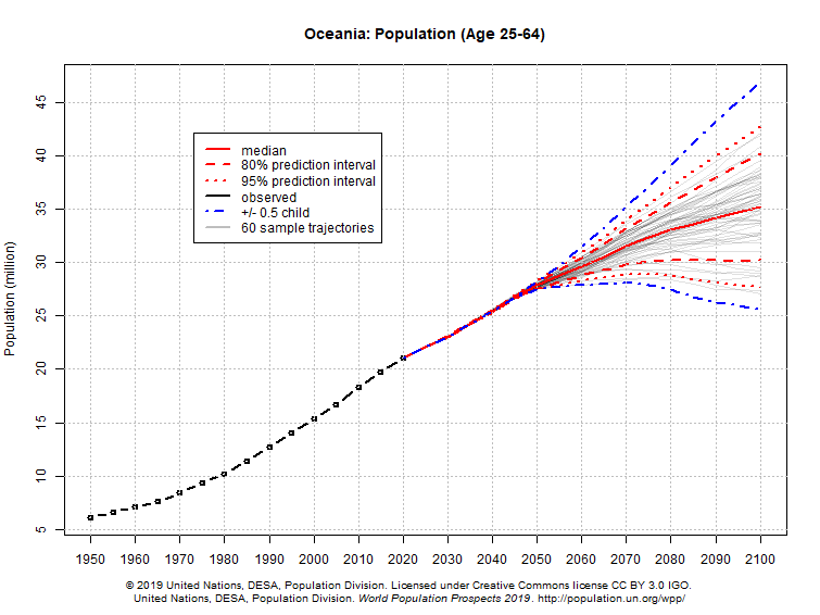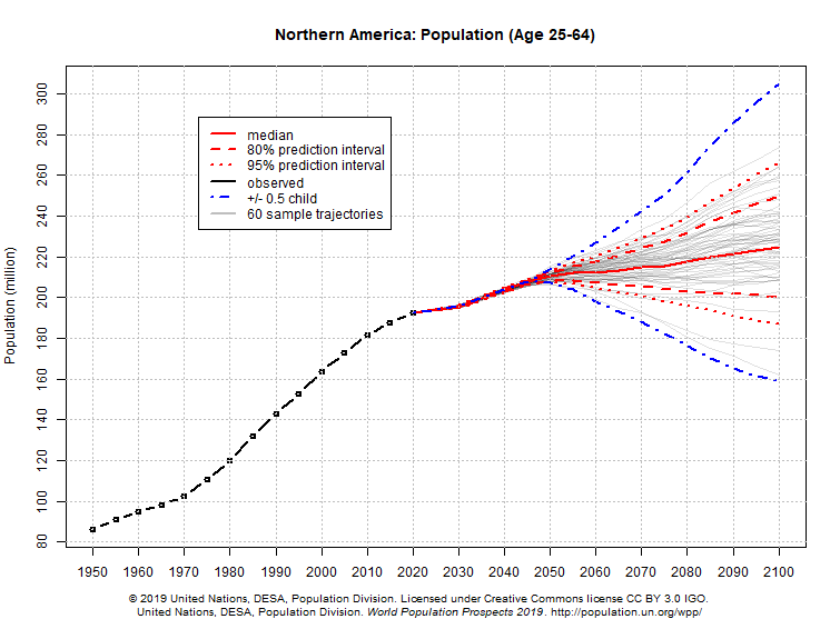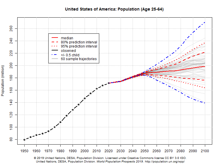 The working-age population of the largest economy, The United States, is projected to modesty rise for the rest of the century.
