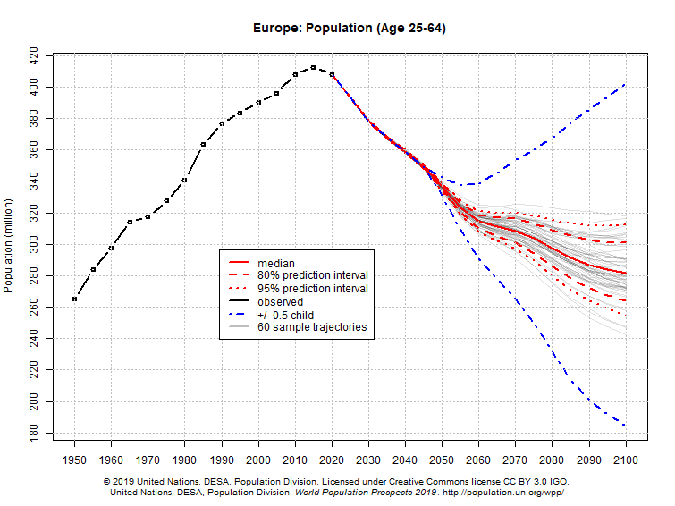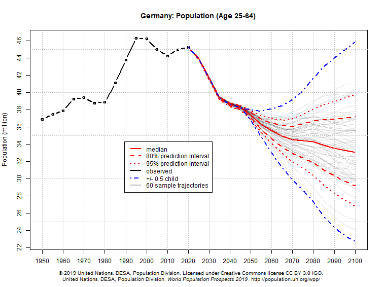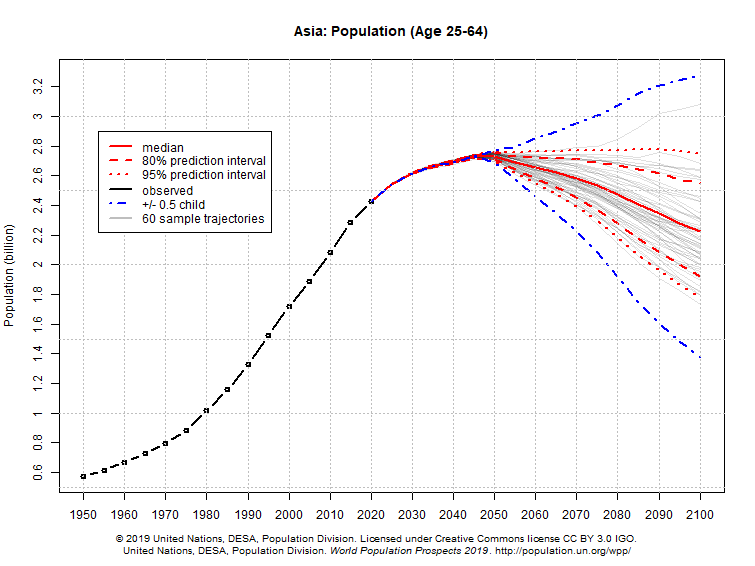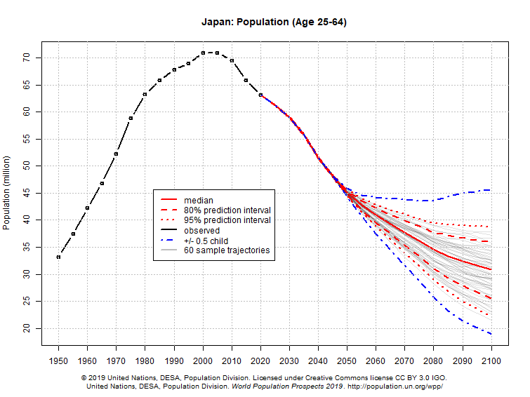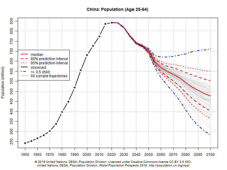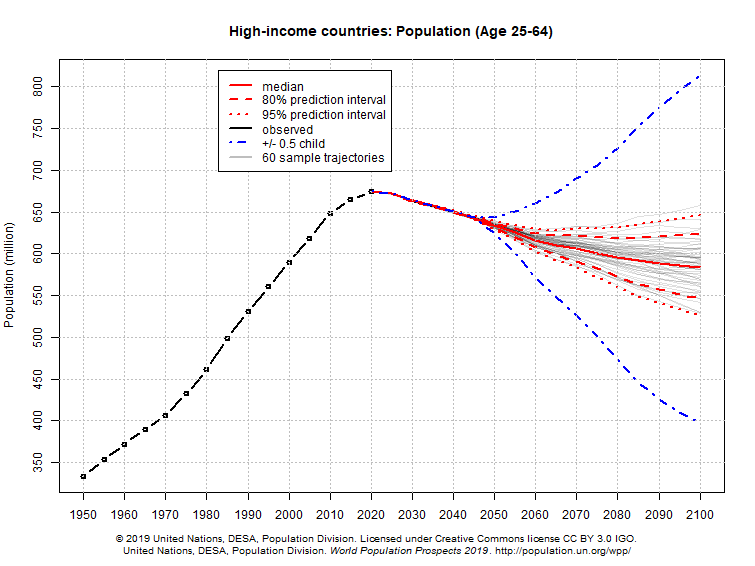 I compiled UN data showing how the primary working and consuming ages (25–64) grew in various countries since WW2 and where it’s projected to go.