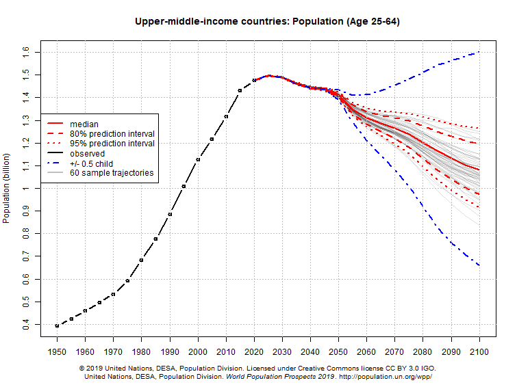 The working-age population of high-income countries looks like it topped out in 2020, and upper-middle-income countries will likely peak around the middle of the decade.